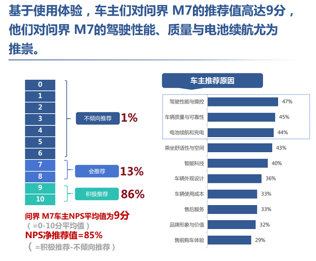 必须要承认的是,居品力的优劣,用户口碑最有发言权。《叙述》暴露,全新问界M7车主NPS净保举值高达85%,用户保举评分均值达到9分,超高的保举率印证了车型的硬核实力。车主们多量合计,全新问界M7兼顾了感性需求与情谊价值,安全够硬核、科技够实用、空间够广阔、颜值够出众,实足匹配家庭用车的中枢诉求。