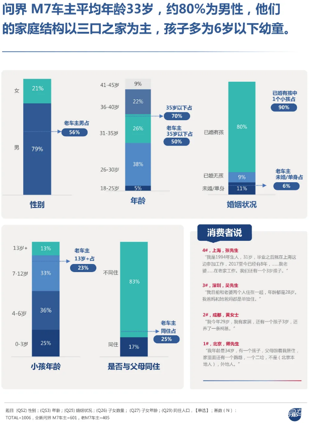 而被宽泛合计是“30万级SUV价值之选”的全新问界M7,精确餍足了当下耗尽者的需求。就在近日,尼尔森IQ发布车主画像调研——《问界M7车主画像分析叙述》(以下简称“《叙述》”)。