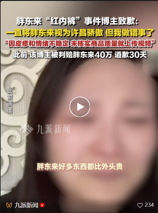 据白鹿视频,2025年,胖东来与自媒体博主段某因“红内裤掉色、引起过敏”一事激发相聚庸碌激情。