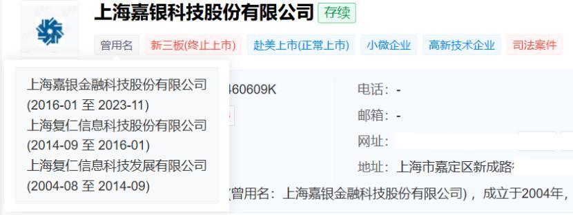 2016年2月29日,复仁科技公司称呼变更为“上海嘉银金融科技股份有限公司”,证券简称变更为“嘉银金科”,证券代码依旧为832031。