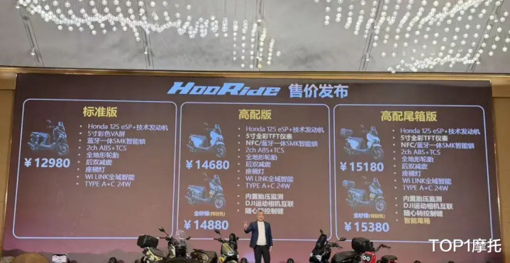 3月20日,五羊本田发布两款新车,跨界作风水冷125踏板HooRide:规范版12980元,高配版14680元,高配金砂绿14880元,高配尾箱版15180元,高配尾箱金砂绿15380元;2026款NWG150莫得在现场公布价钱。不外HooRide125在3月31日之前有订金1000抵扣1500,再送500大礼包的行为。4月1日-4月31日就只剩下600元礼包了。
