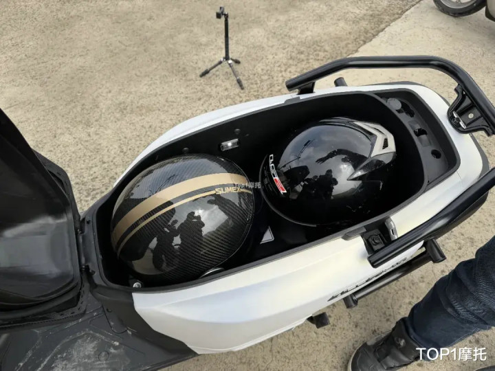 因为前置油箱在踏板下面,是以座桶容量作念到了35L,八成放进去一顶全盔和一顶3/4盔,致使八成坐进去一个姑娘姐(身高160cm、体重46kg),如斯大的座桶在125的踏板当中十分忽视。