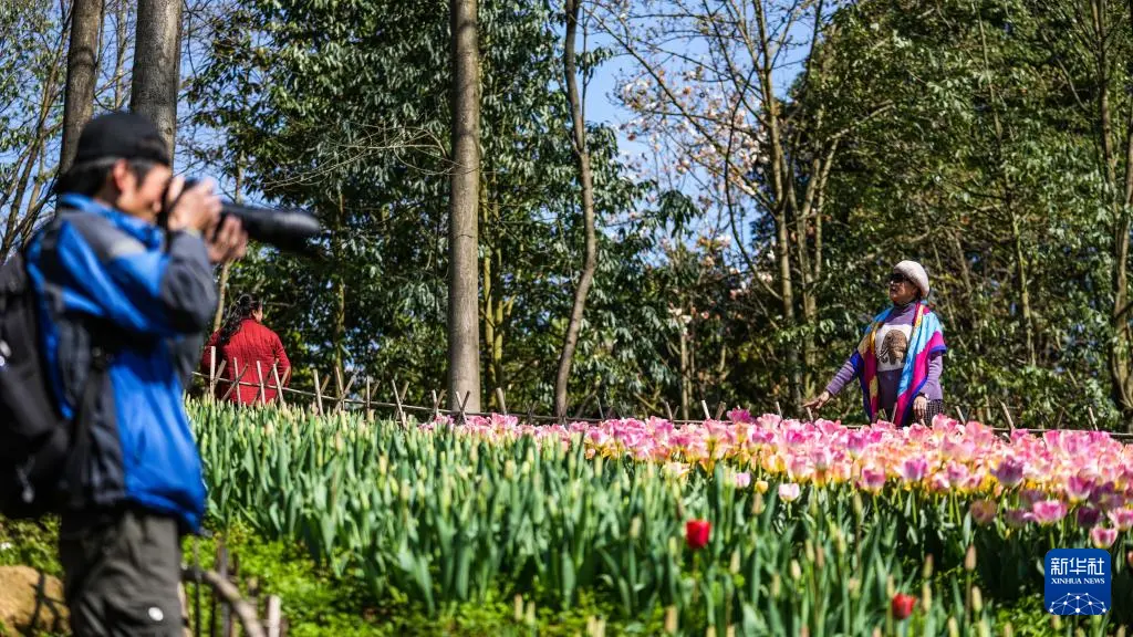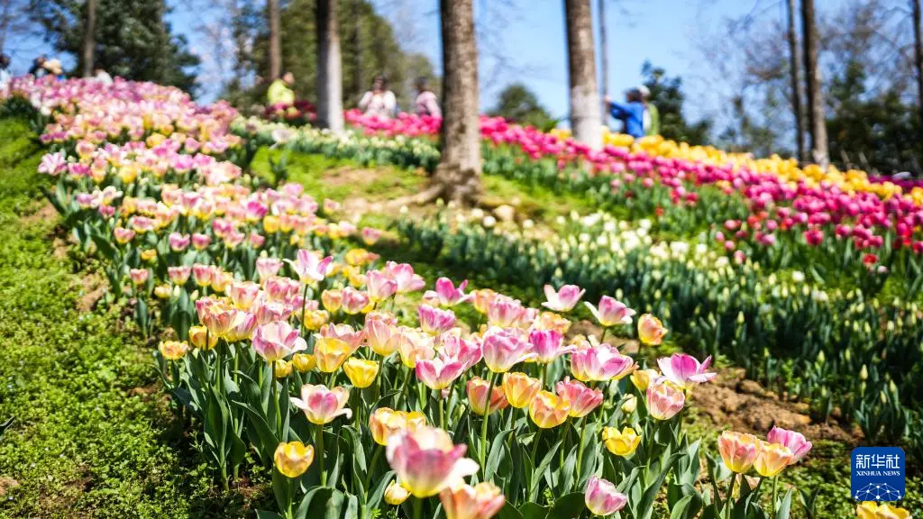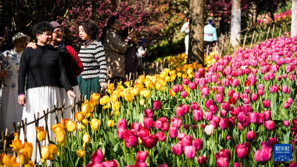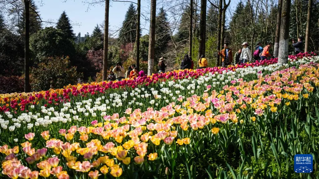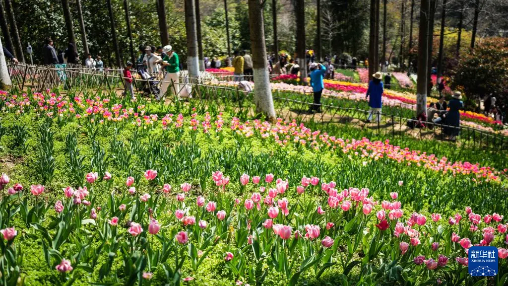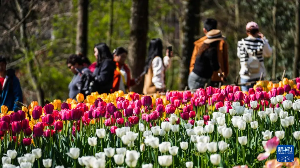 近日,贵州省黔南布依族苗族自治州龙里县龙架山国度丛林公园内的数万株郁金香竞相绽放,诱惑各地搭客前来游赏玩景。